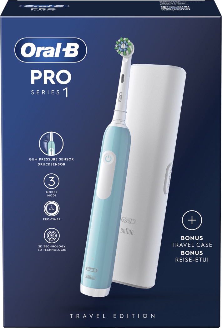 Komplektā: Elektriskā zobu birste, 1 zobu birstes uzgalis, Lādētājs un Ceļojuma futrālis