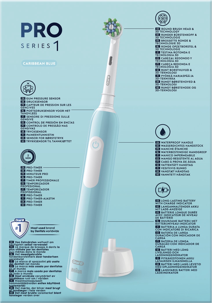 Oral-B apaļā galviņa ieskauj katru zobu tīrākiem zobiem un smaganām, noņemot pat par 100% vairāk zobakmens, salīdzinot ar parastu manuālo zobu birsti.