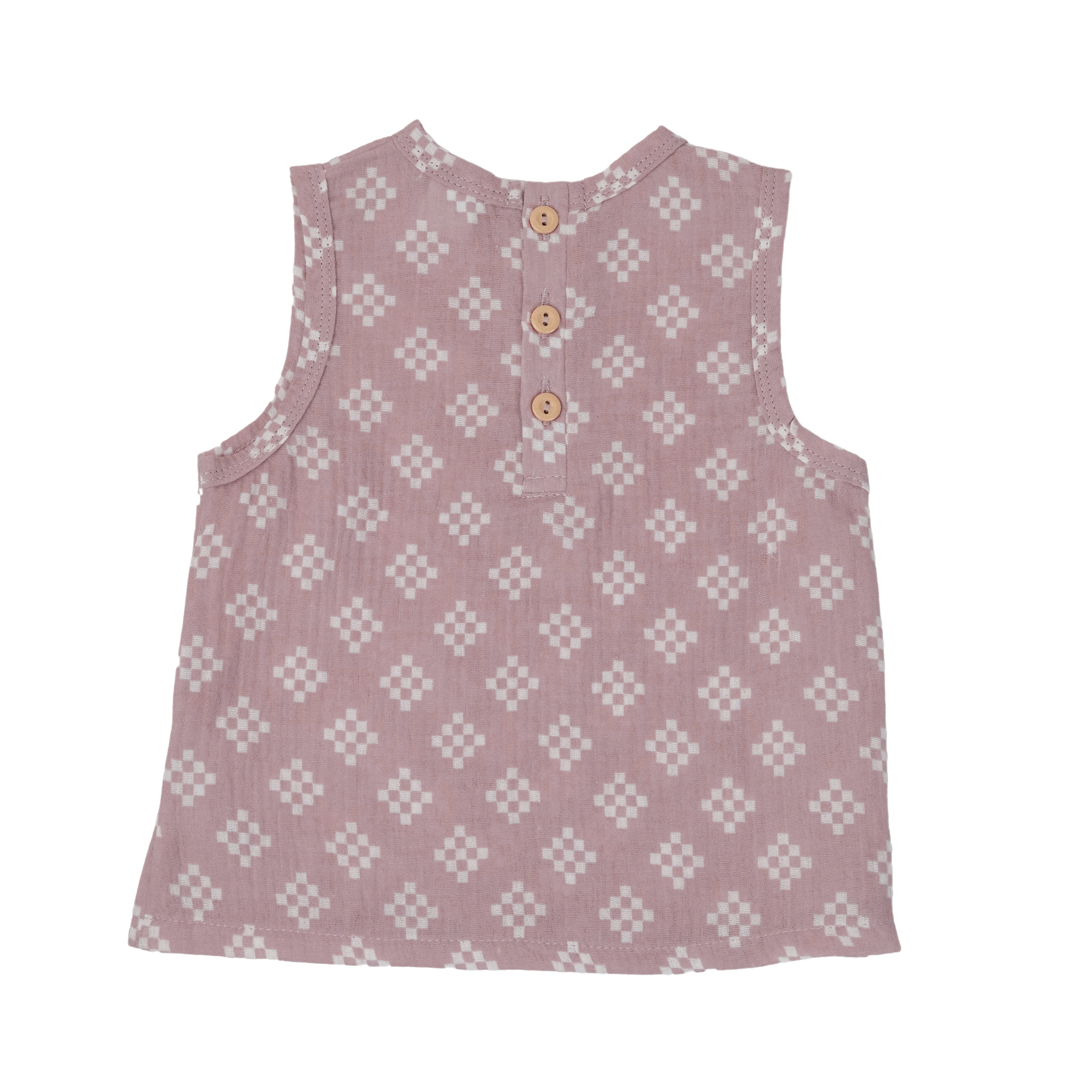 Jaunums mūsu kolekcijā: šis vasaras mazuļu krekliņš bez piedurknēm siltām dienām. Izgatavots no 100% muslīna kokvilnas ar jauku rakstu, tas ir skaists un piemīlīgs vienlaikus. Ērts krekliņš, kuram noteikti jābūt jūsu mazuļa vasaras komplektos. Protams, ar kvalitātes marķējumu Oeko-Tex®.