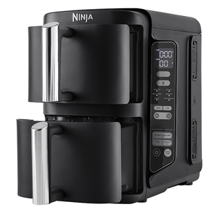 Elegants vadības panelis, kas ērti izvietots sānos, piedāvā vieglu piekļuvi, ļaujot jums viegli izvēlēties vēlamo iestatījumu katrai atvilktnei. Turklāt jūsu ērtībai Ninja karstā gaisa friteris automātiski pārtrauc gatavošanu, kad taimeris sasniedz nulli. Komplektā iekļauta arī pavāra izstrādāta recepšu grāmatiņa, kas palīdzēs iedvesmot jūsu kulinārijas radošumu.